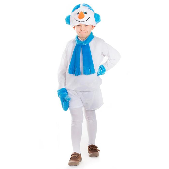 Карнавальный костюм «Снеговичок», кофта, шарф, шорты, шапка, варежки, рост 122-128 см