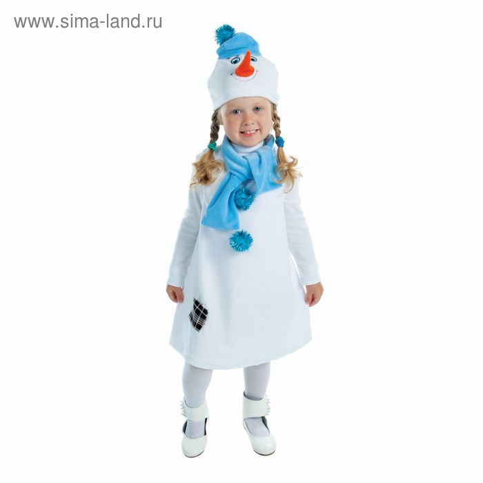 Карнавальный костюм «Снеговик с заплаткой», велюр, рост 98 см, цвет белый