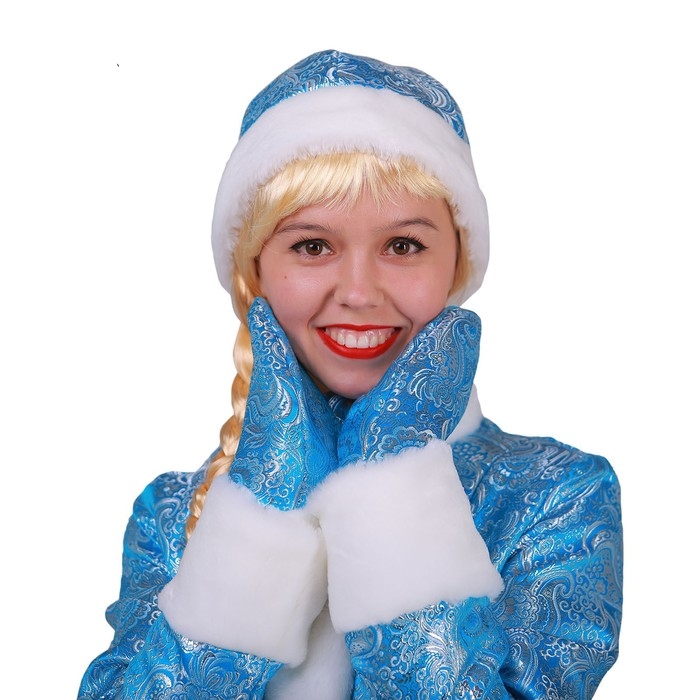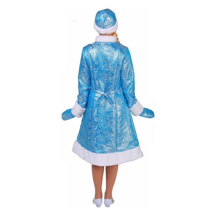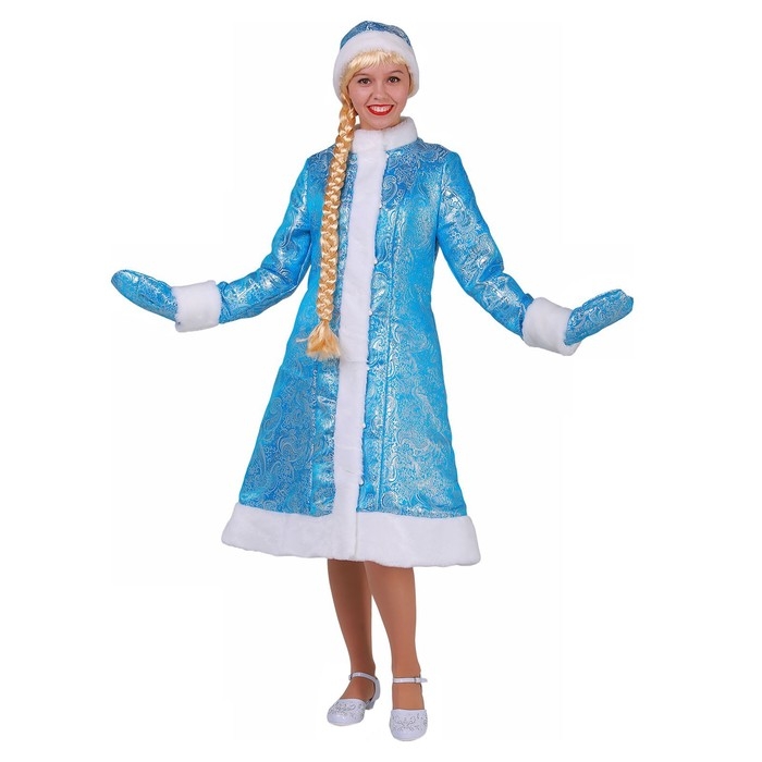 Карнавальный костюм «Снегурочка из парчи», голубая шубка, шапочка, рукавички, р. 48