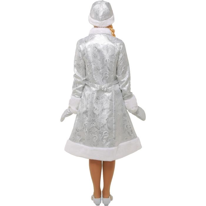 Карнавальный костюм «Снегурочка», шубка из парчи, шапочка, рукавички, цвет серебристый, р. 50