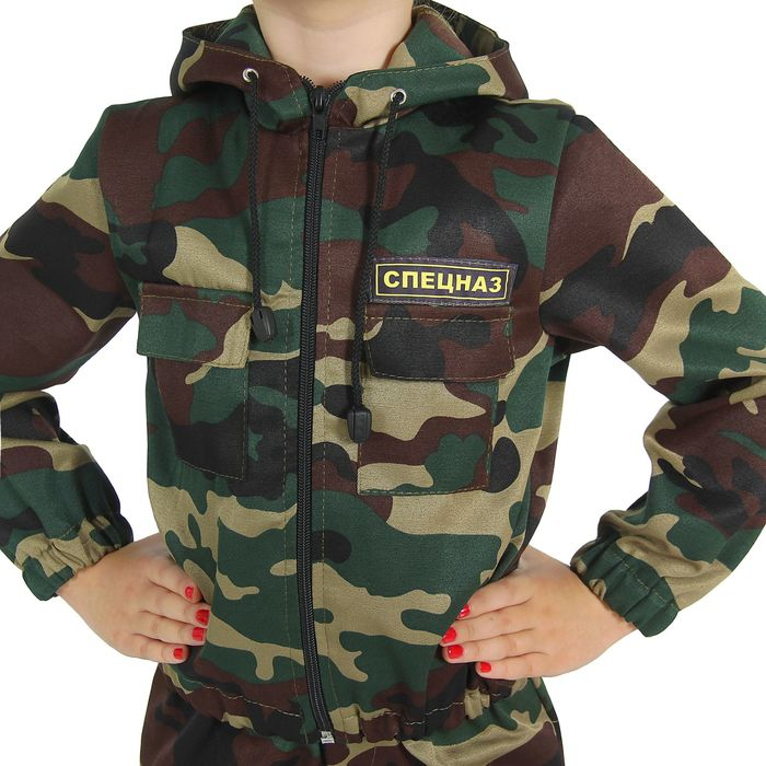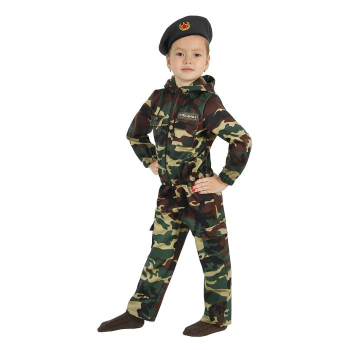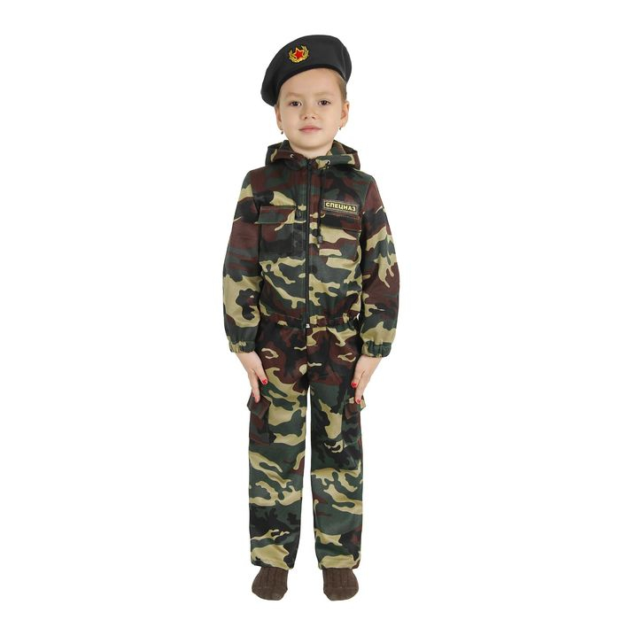 Карнавальный костюм «Спецназ», куртка с капюшоном, брюки, берет, рост 110 см