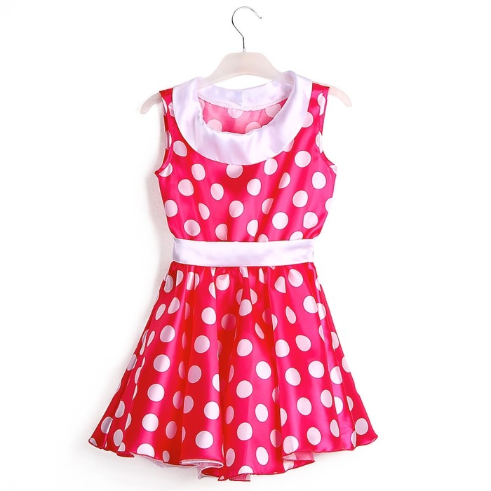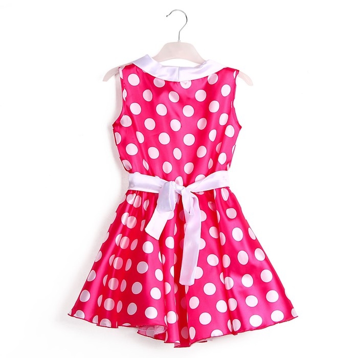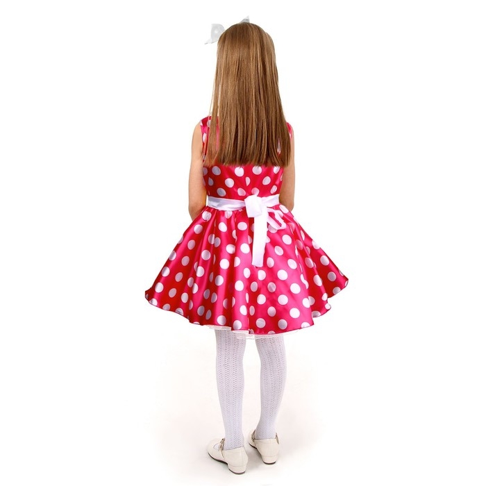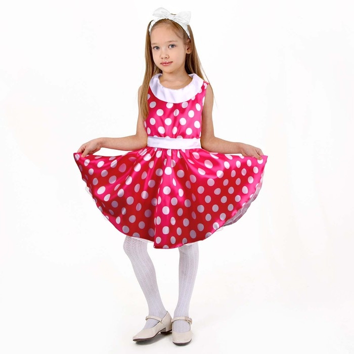 Карнавальный костюм «Стиляги 6», платье фуксия в белый горох, повязка, р. 34, рост 134 см