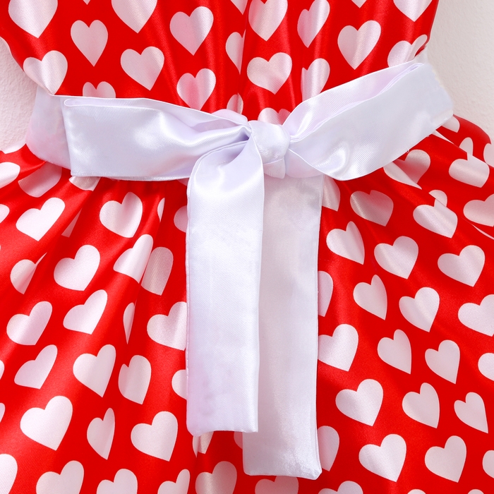 Карнавальный костюм «Стиляги» платье красное с белыми сердцами, повязка р-р 32 рост 122-128 см