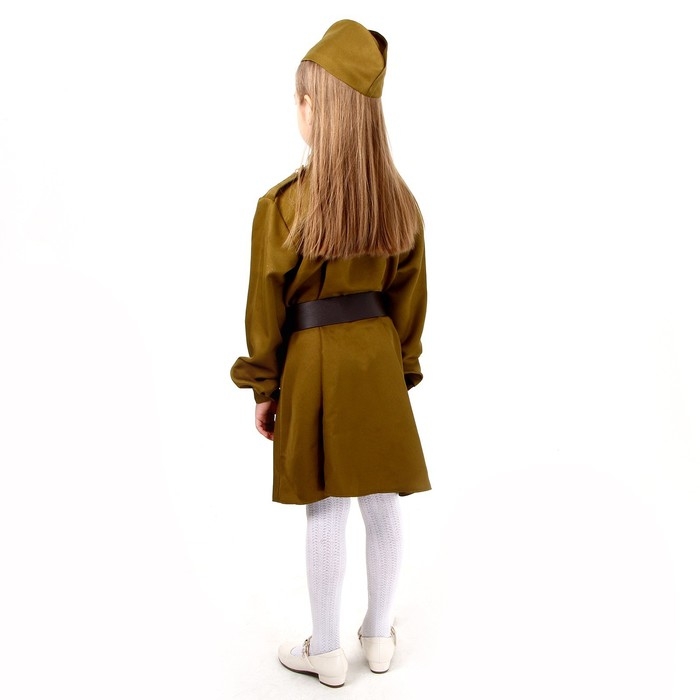 Карнавальный костюм для девочки "Военный", платье, ремень, пилотка, р-р 72, рост 140 см