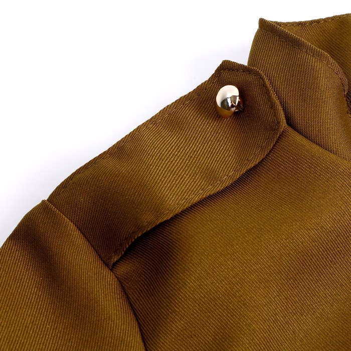 Карнавальный костюм для девочки поможет превратить юную леди в отважную военнослужащую. Платье стилизовано под форму времён Второй мировой и выполнено из качественного габардина. Материал обеспечивает идеальную посадку и не сковывает движения, что делает наряд удобным и комфортным.