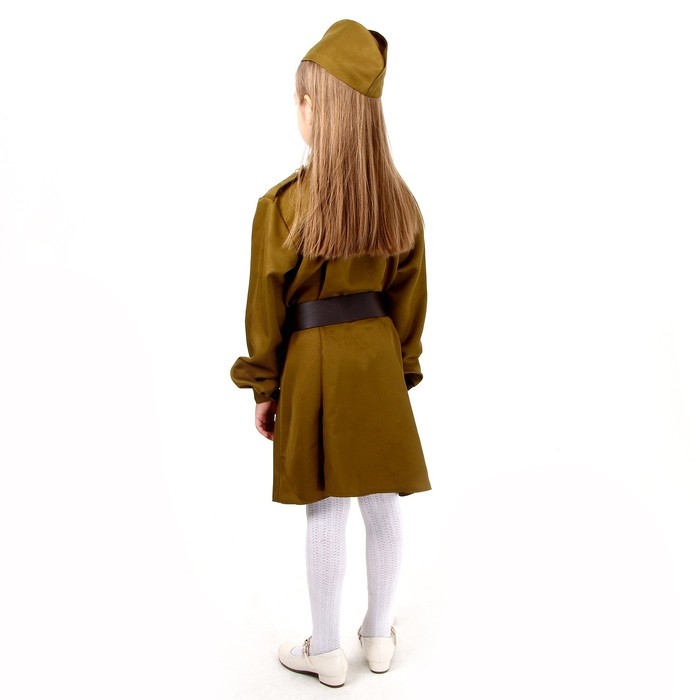 Карнавальный костюм военного: платье с длинными рукавами, пилотка, ремень, габардин, п/э, размер 38, 146-152 см