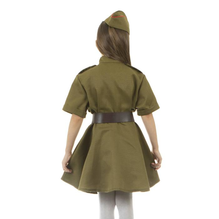 Карнавальный костюм военного: платье с коротким рукавом, пилотка, р-р 32, рост 122-128 см