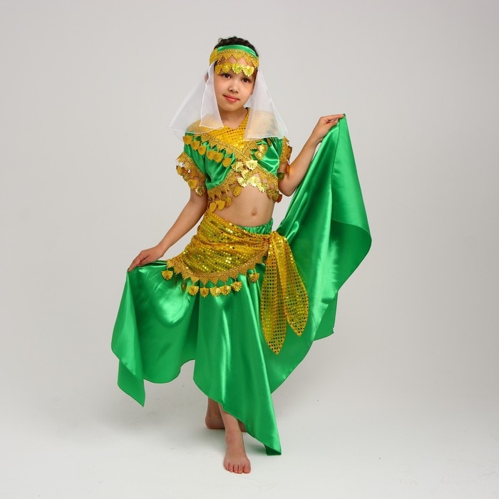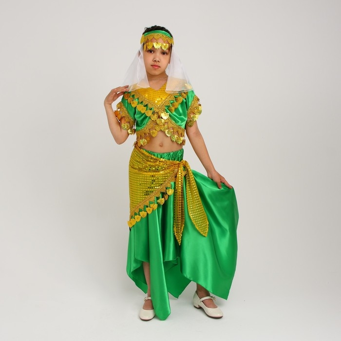 Карнавальный костюм «Восточная красавица. Азиза», цвет зелёно-жёлтый, р. 32, рост 122-128 см