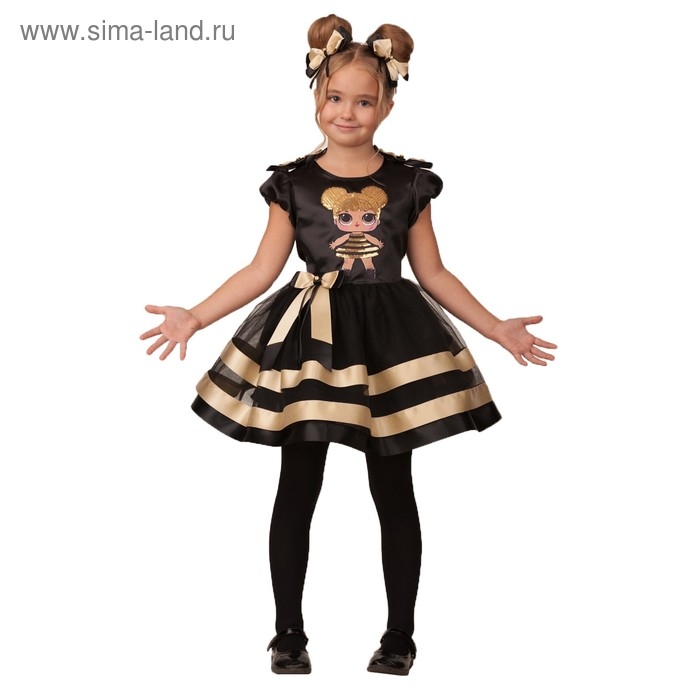 Карнавальный костюм «Золотая пчёлка», платье, ободок с помпонами, р. 32, рост 122 см