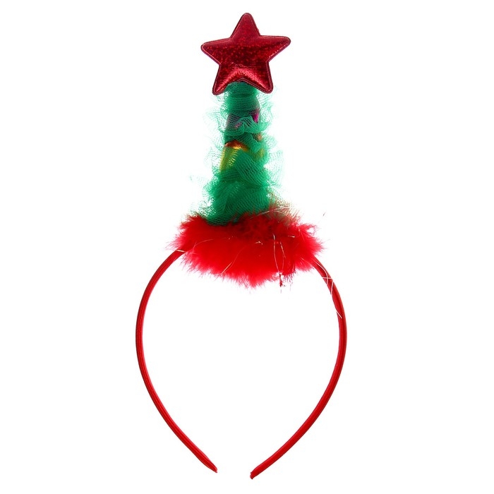 - Ободок украшен миниатюрной елочкой со звездой на верхушке. Ободок плотно сидит на голове, благодаря чему аксессуар удобно носить