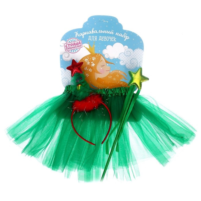 Карнавальный набор «Ёлочка», 3 предмета: ободок, жезл, юбка, 3-5 лет