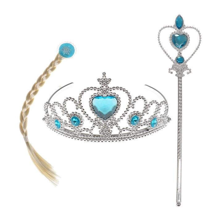 Карнавальный набор «Холодное сердце»: белая коса, жезл, корона