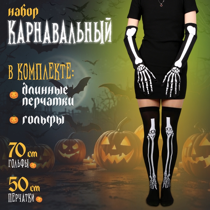 Карнавальный набор «Кости», гольфы, длинные перчатки