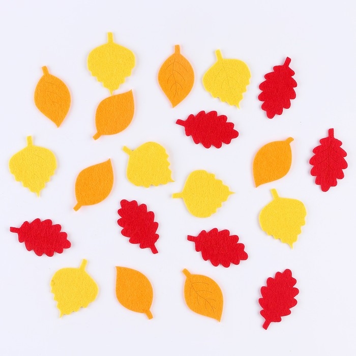 - Листочки выполнены в насыщенных оттенках жёлтого, оранжевого и красного цветов.