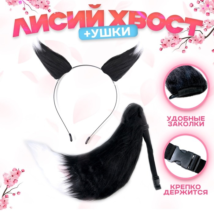 Карнавальный набор «Лиса аниме», чёрный, 2 предмета: хвост, ушки