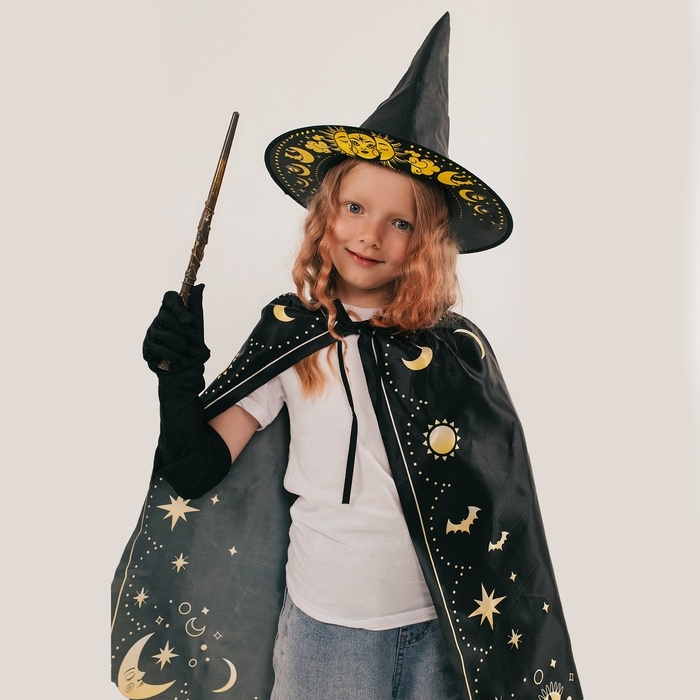 Карнавальный набор «Лунная ведьма», плащ 70 см, шляпа, перчатки, палочка