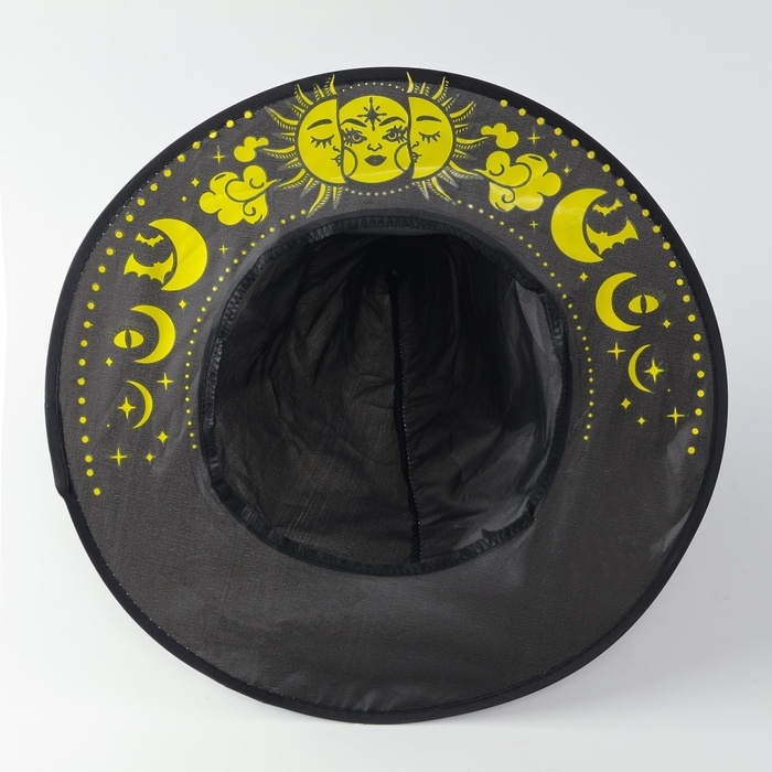 - Стильная шляпа из полиэстера дополнит образ ведьмы. Она не давит на голову, благодаря удобной конструкции