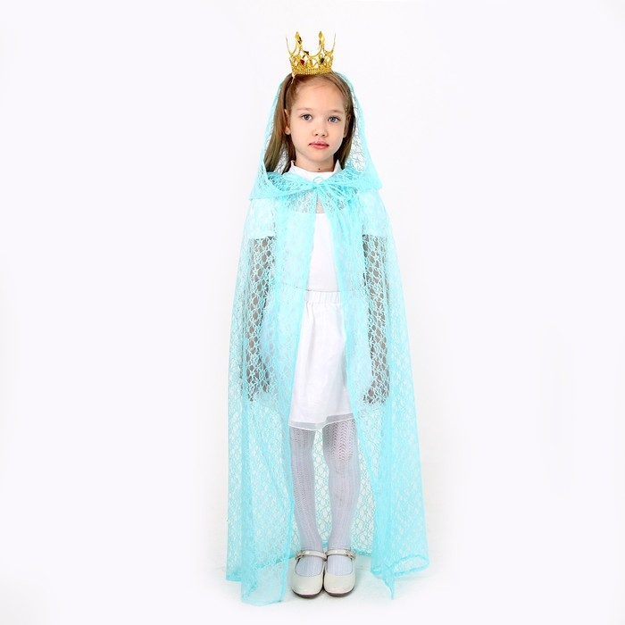 Карнавальный набор принцессы: плащ гипюровый мятный, корона, длина 100 см