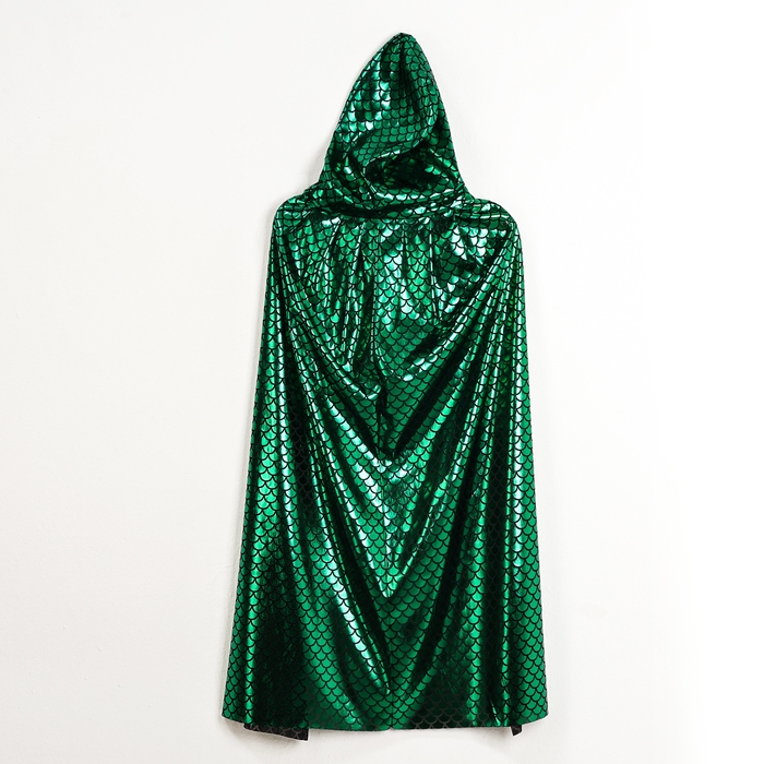 - Плащ на завязках выполнен из мерцающей ткани, которая создает эффект переливающихся чешуек