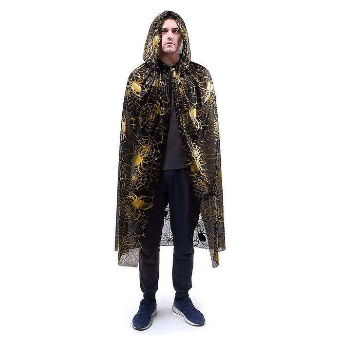 Карнавальный плащ с золотыми пауками с капюшоном, трикотин, длина 120 см