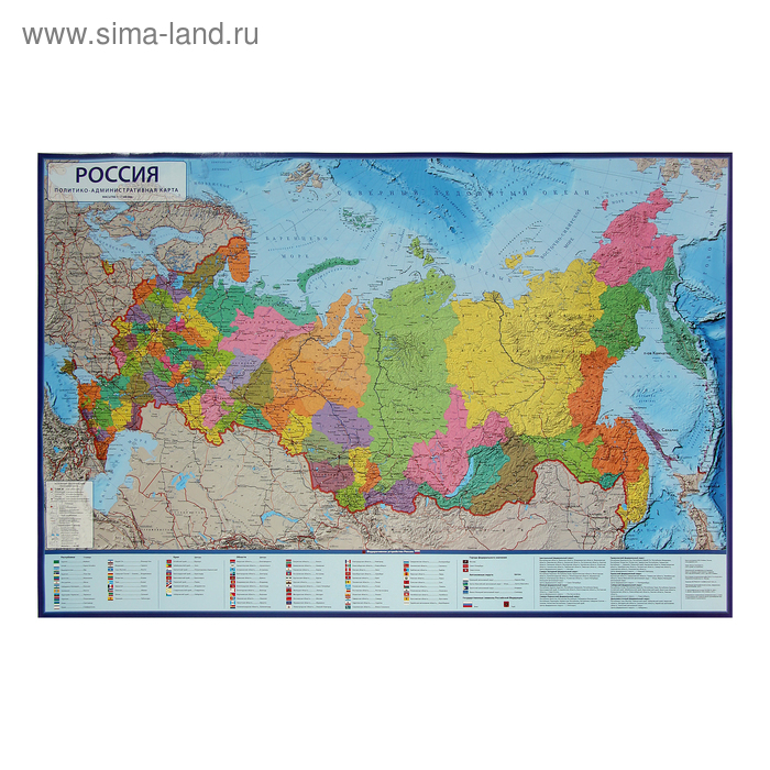 Карта России политико-административная, 116 х 80 см, 1:7.5 млн, ламинированная, в тубусе