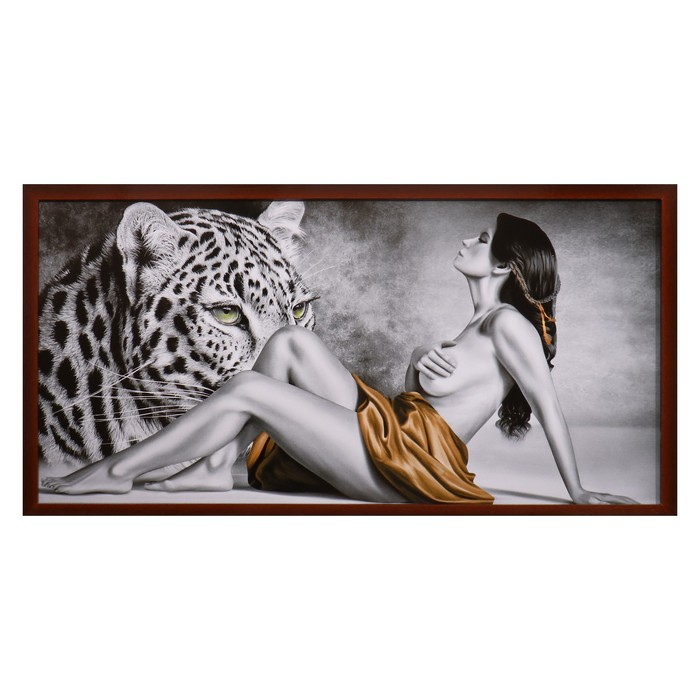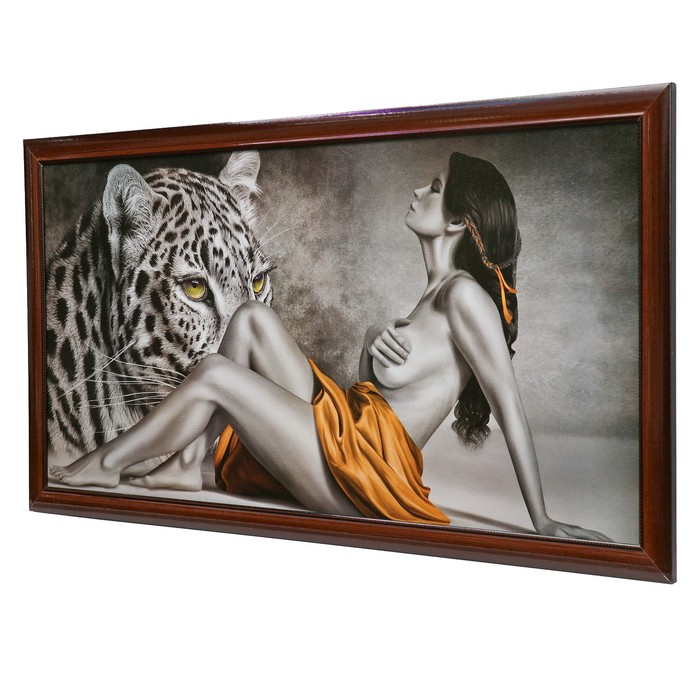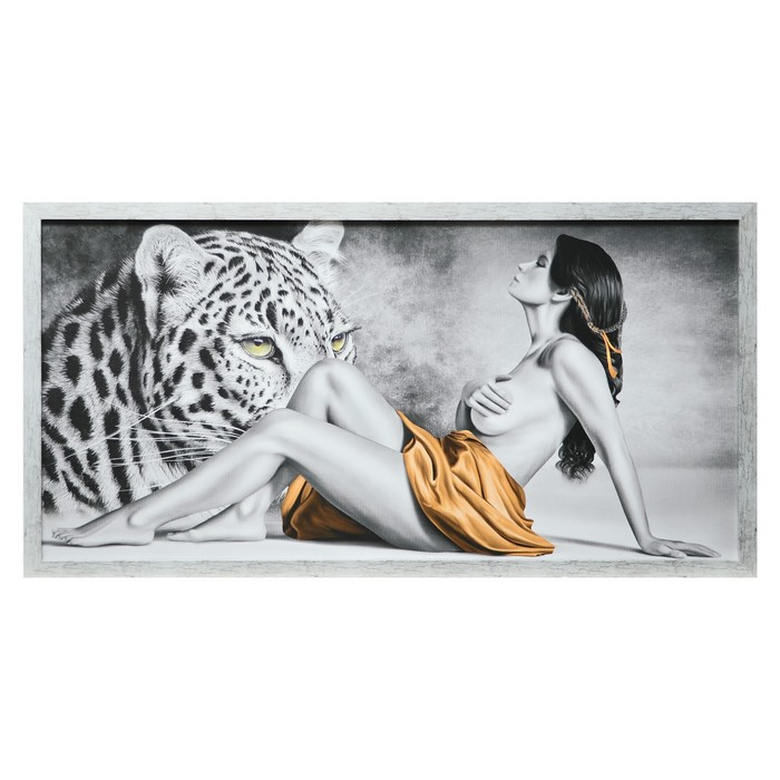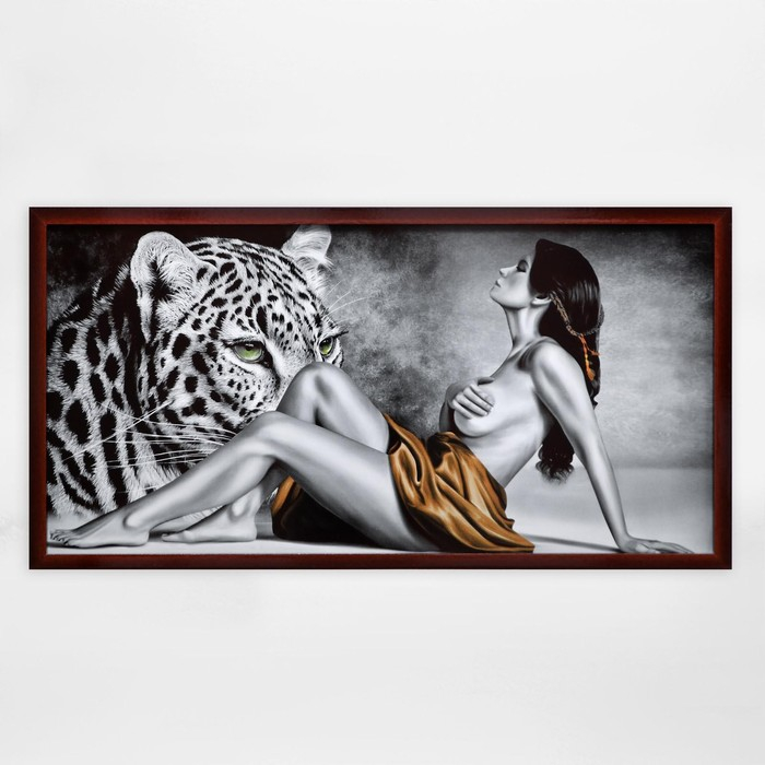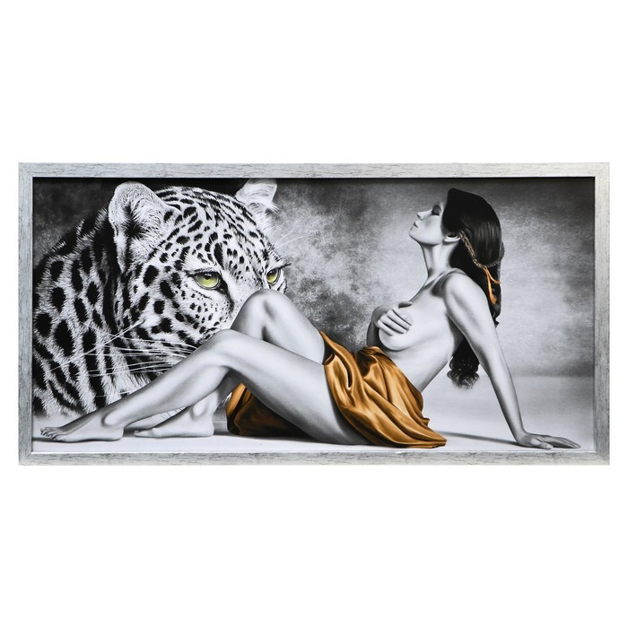 Картина "Девушка и леопард" 56х106см рамка микс