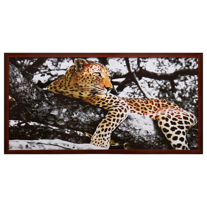 Картина "Леопард на дереве" 56х106см рамка микс