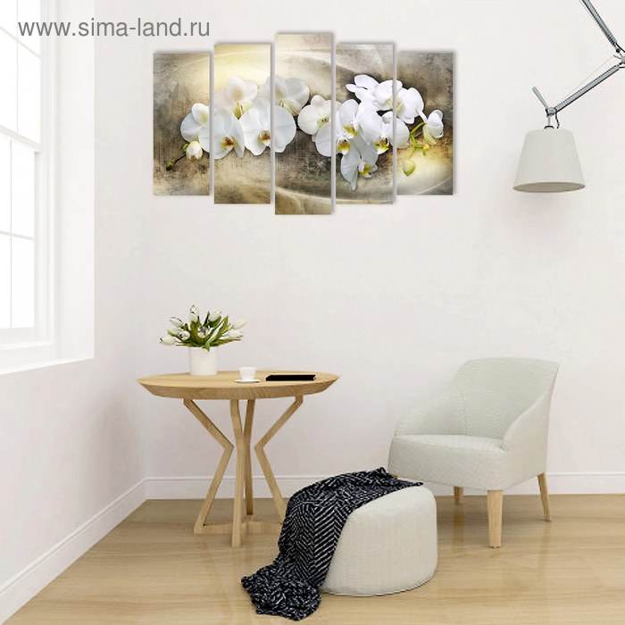 Картина модульная на подрамнике "Белый фаленопсис" 2-25*63; 2-25*71; 1-25*80: 125*80 см