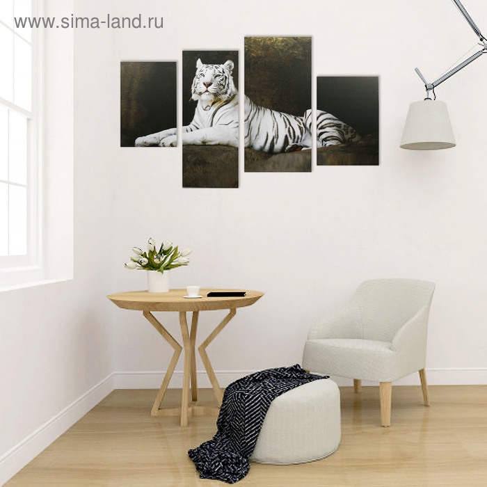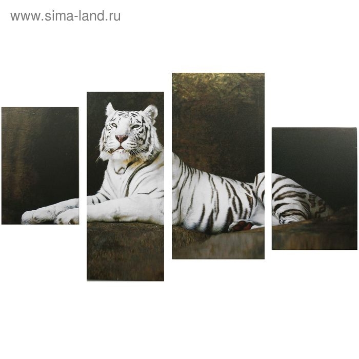 Картина модульная на подрамнике "Бенгальский тигр" 2-30х45; 1-29,5х69; 1-34х69 визуально расширит пространство. Это идеальное решение для небольших комнат, коридоров и холлов.