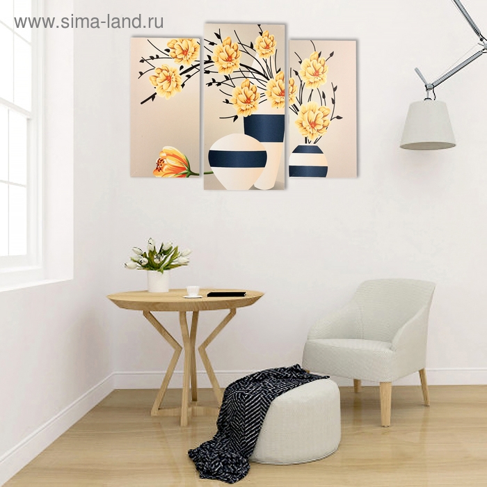 Картина модульная на подрамнике "Цветы в вазе" (2-25х50, 30х60 см) 80х60 см