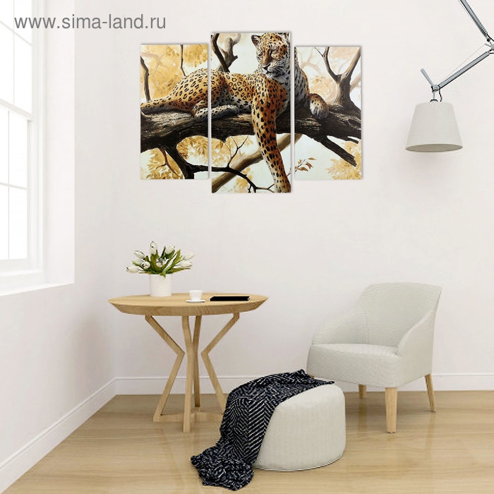 Картина модульная на подрамнике "Гепард на отдыхе" (2-25х50, 30х60 см) 80х60 см