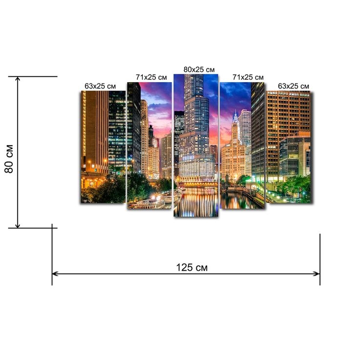Картина модульная на подрамнике "Красота мегаполиса" 2-63*25,2-71*25,1-80*25; 125*80 см