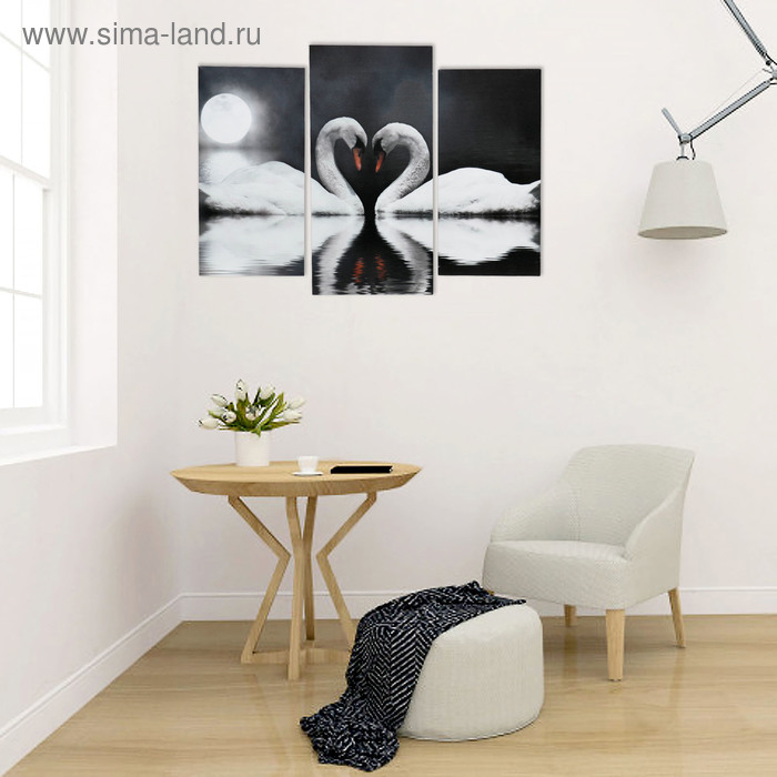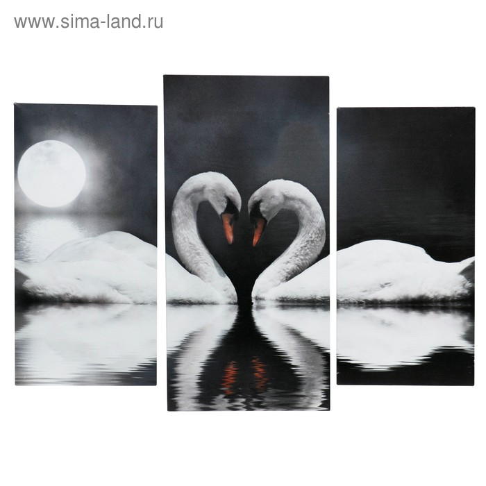 Картина модульная на подрамнике "Лебеди в ночи" 2шт-25х50, 1шт-30х60 ;60*80 см