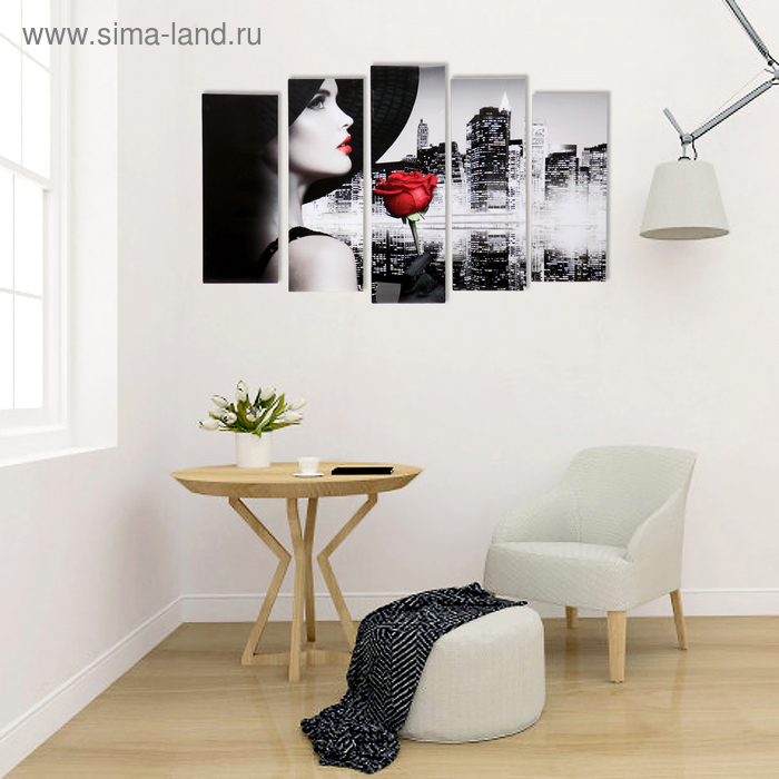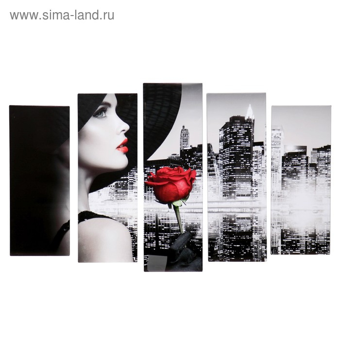Картина модульная на подрамнике "Леди на фоне города" 2шт-21*54; 2шт-21*61; 1шт-21*68см