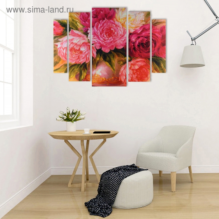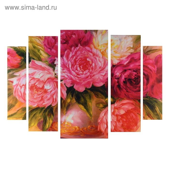 Картина модульная на подрамнике "Пионы в вазе" 2-14х53, 2-21х69,5 1-34х79; 80х118см