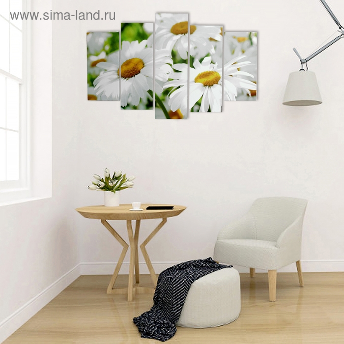 Картина модульная на подрамнике "Ромашки" 2шт-25х52; 2шт-25х67; 1шт-25х80см 80*125 см