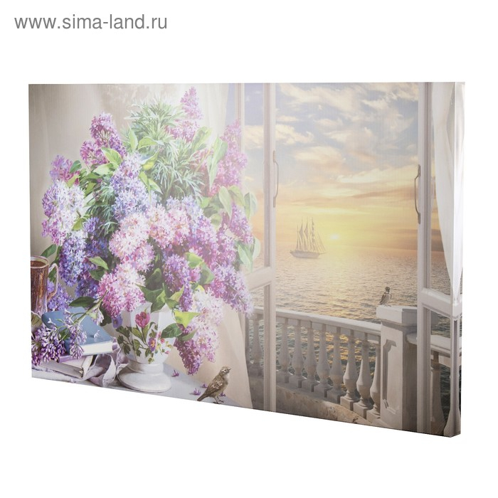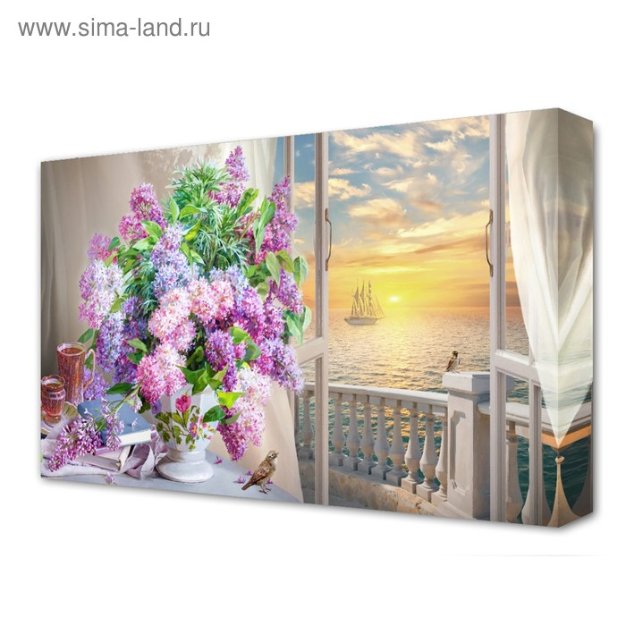 Картина на холсте "Букет сирени у окна" 60*100 см