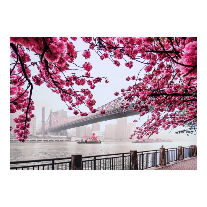 Картина на холсте "Цветущая сакура в Нью-Йорке" 50*70 см