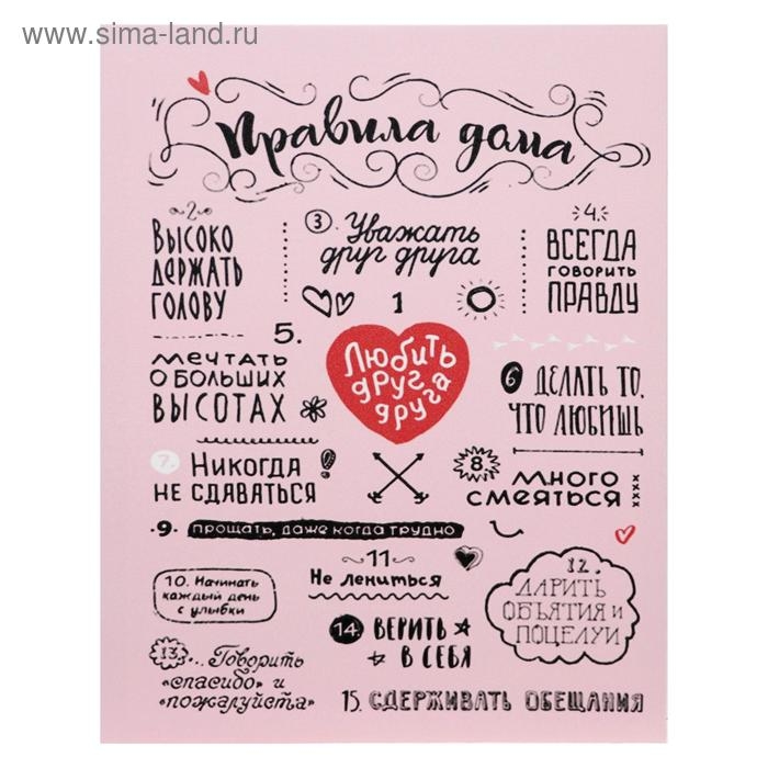 Картина на холсте "Правила дома. Любить друг друга" 38х48 см