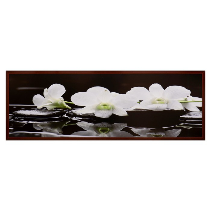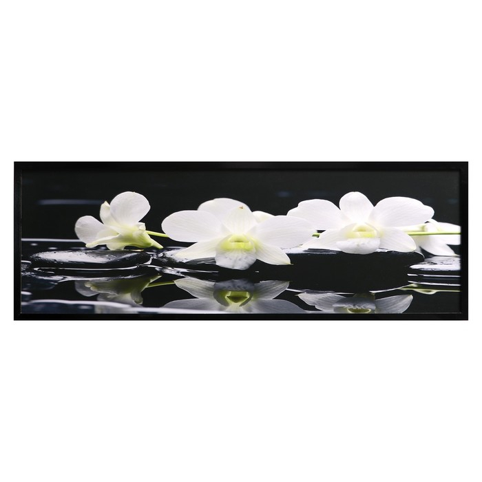 Картина "Орхидеи на чёрных камнях" 57*157 см рамка МИКС