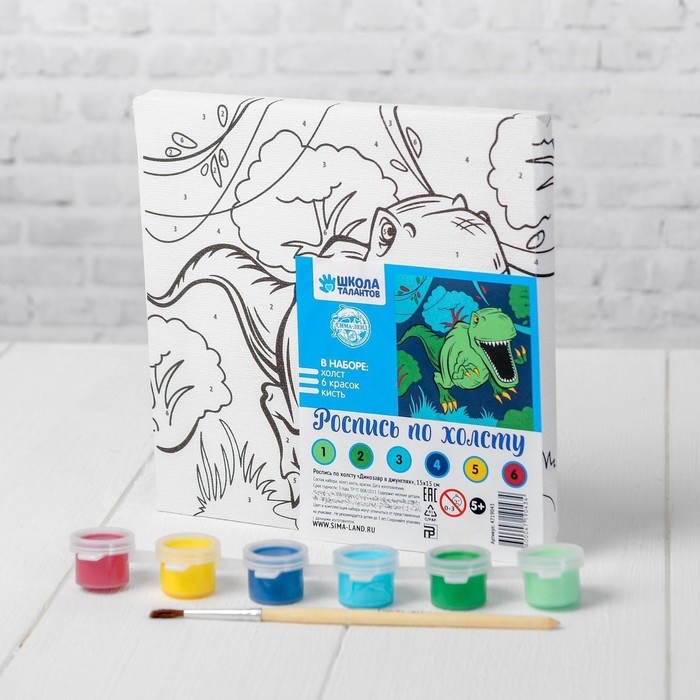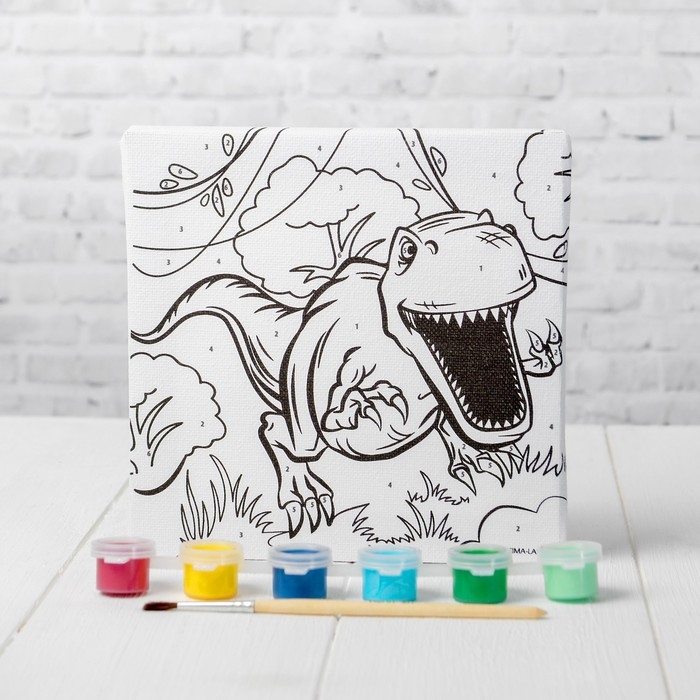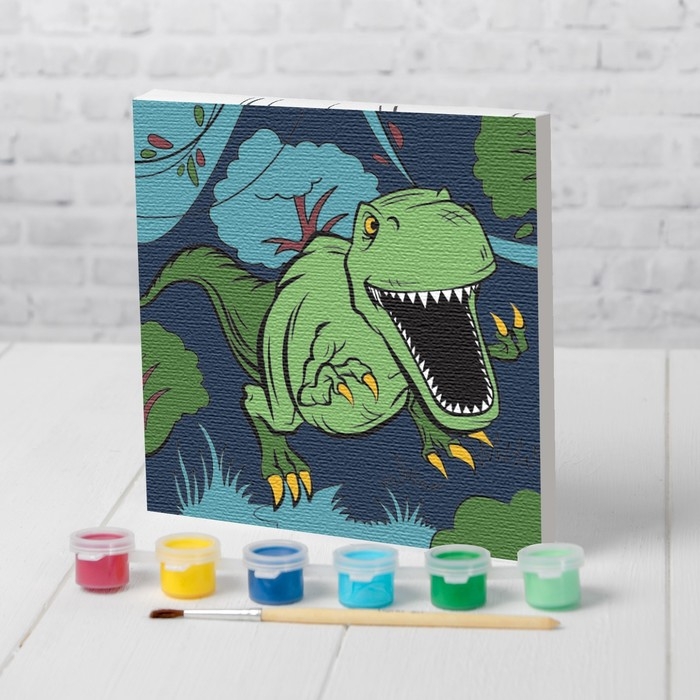 Картина по номерам для детей «Динозавр в джунглях», 15 х 15 см