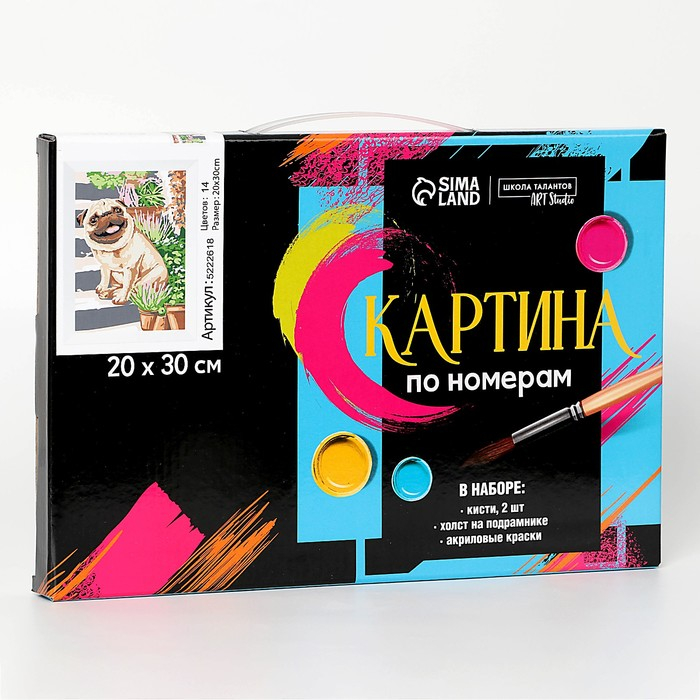 Картина по номерам на холсте с подрамником «Мопс» 20х30 см понравится и детям, и взрослым.