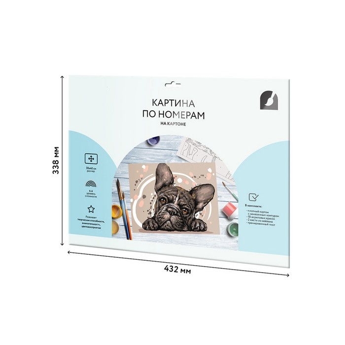 Картина по номерам на картоне «Французский бульдог», 30 × 40 см, с акриловыми красками и кистями