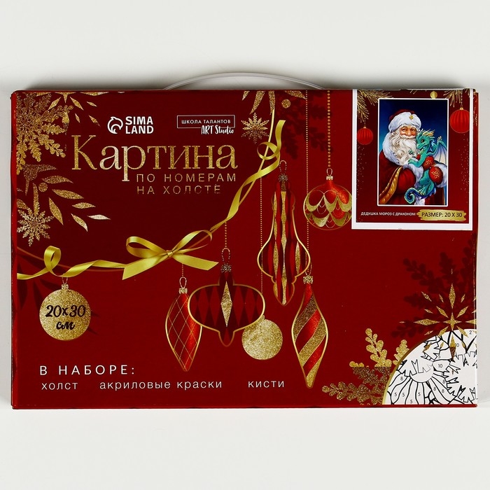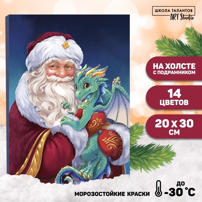 Картина по номерам на новый год на холсте с подрамником «Дедушка Мороз с драконом», 20 х 30 см