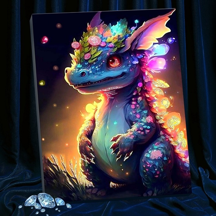 Картина по номерам с кристаллами из хрусталя, 40 × 50 см «Неоновый дракон» 28 цветов