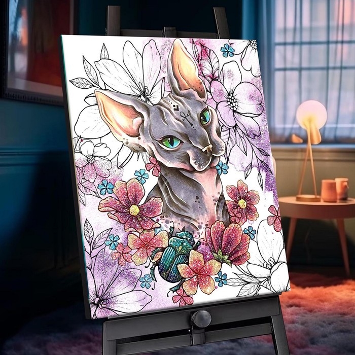 Картина по номерам с кристаллами из хрусталя «Сфинкс с цветами» 26 цветов, 40 × 50 см