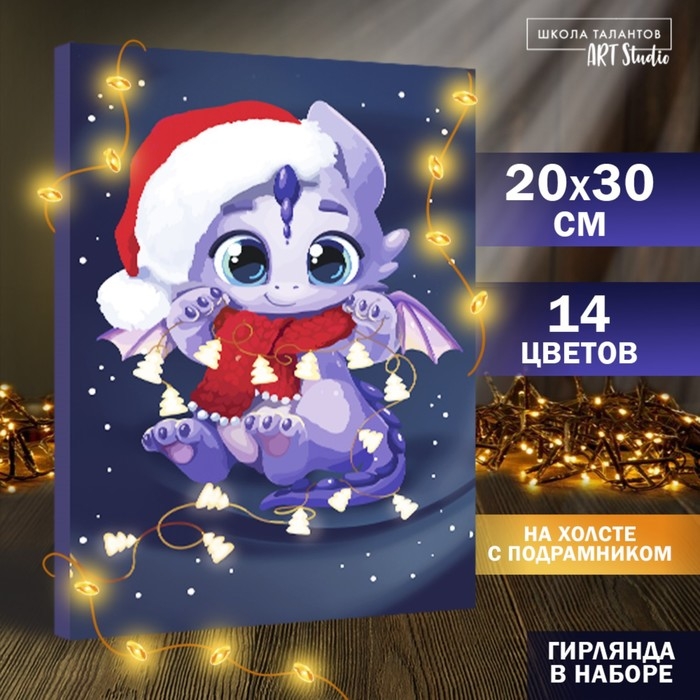Картина по номерам с подрамником и гирляндой «Дракоша с гирляндой», 20 х 30 см