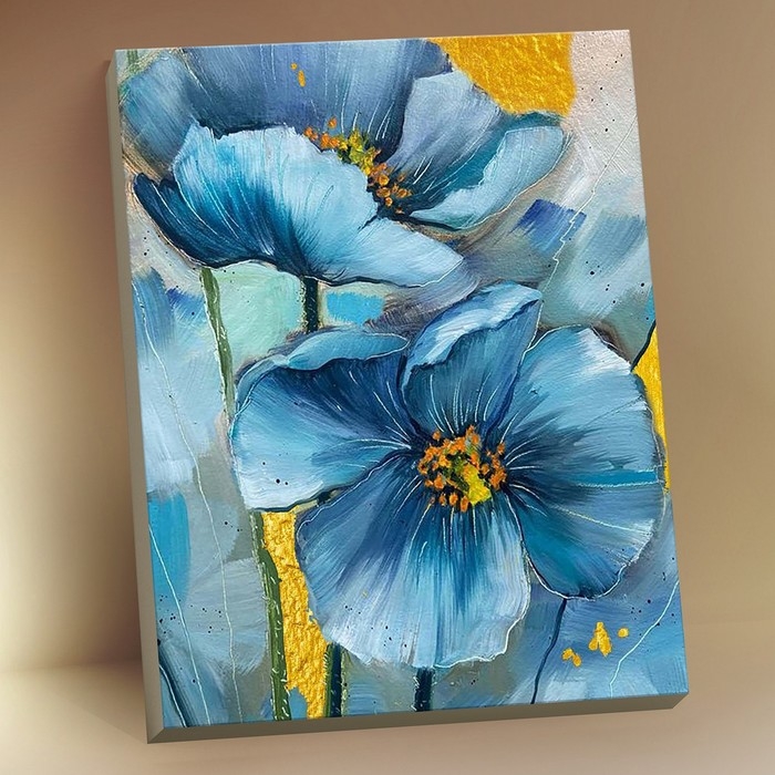 Картина по номерам с поталью «Голубые цветы» 18 цветов, 40 × 50 см