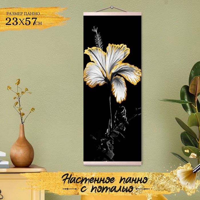 Картина по номерам с поталью «Панно» «Чёрно-белый гибискус» 7 цветов, 23 × 57 см