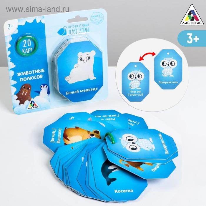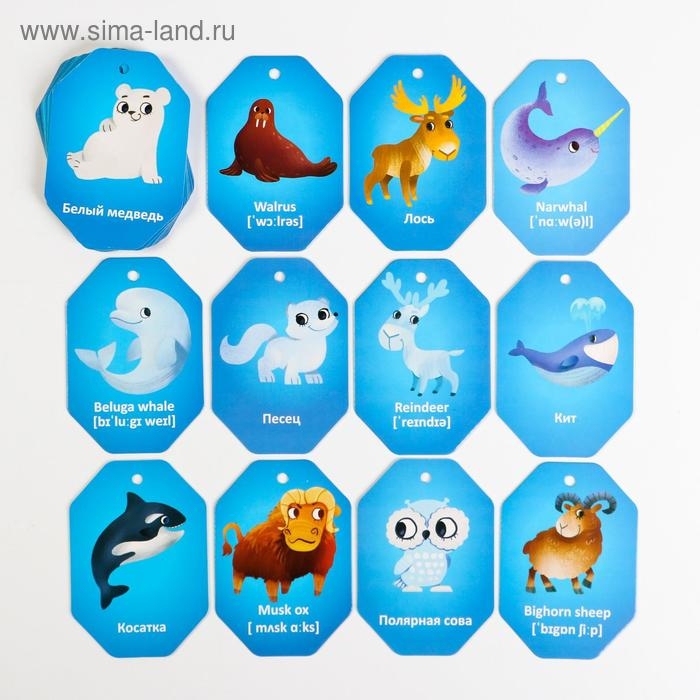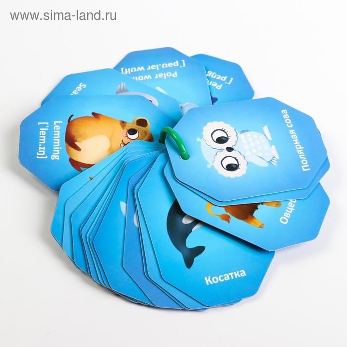 Карточки на кольце для изучения английского языка «Животные полюсов», 20 карт, кольцо, 3+